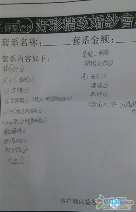 正文摘要:人于8月14號(hào)在好彩婚紗攝影約定了一套婚紗照原價(jià)5999元(惠州奧地利小鎮(zhèn)攝影基地3套衣服+仁化好彩專用奧斯卡攝影基地3套衣服)。 和店員協(xié)商后優(yōu)惠價(jià)為5299元,另外贈(zèng)送一套全新婚紗。   ... |