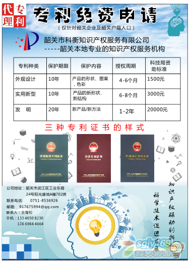 正文摘要:專利免費(fèi)申請。!(僅對韶關(guān)企業(yè)和戶籍人口)韶關(guān)市科衡知識產(chǎn)權(quán)服務(wù)有限公司-----韶關(guān)本地專業(yè)的知識產(chǎn)權(quán)服務(wù)機(jī)構(gòu)地址:韶關(guān)市武江區(qū)工業(yè)東路24號陽光康地A棟702房電話:0751-8536926聯(lián)系人:王工手 機(jī) ... |
